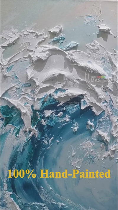 Dynamic Impasto Texture: Thick layers of paint (impasto) create incredible depth and a palpable, three-dimensional texture that mimics the foam and spray of the ocean.
